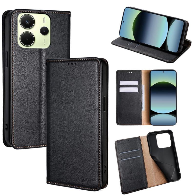 For Redmi Note 14 4G 163.25mm Gloss Oil Solid Color Magnetic Leather Phone Case(Black)