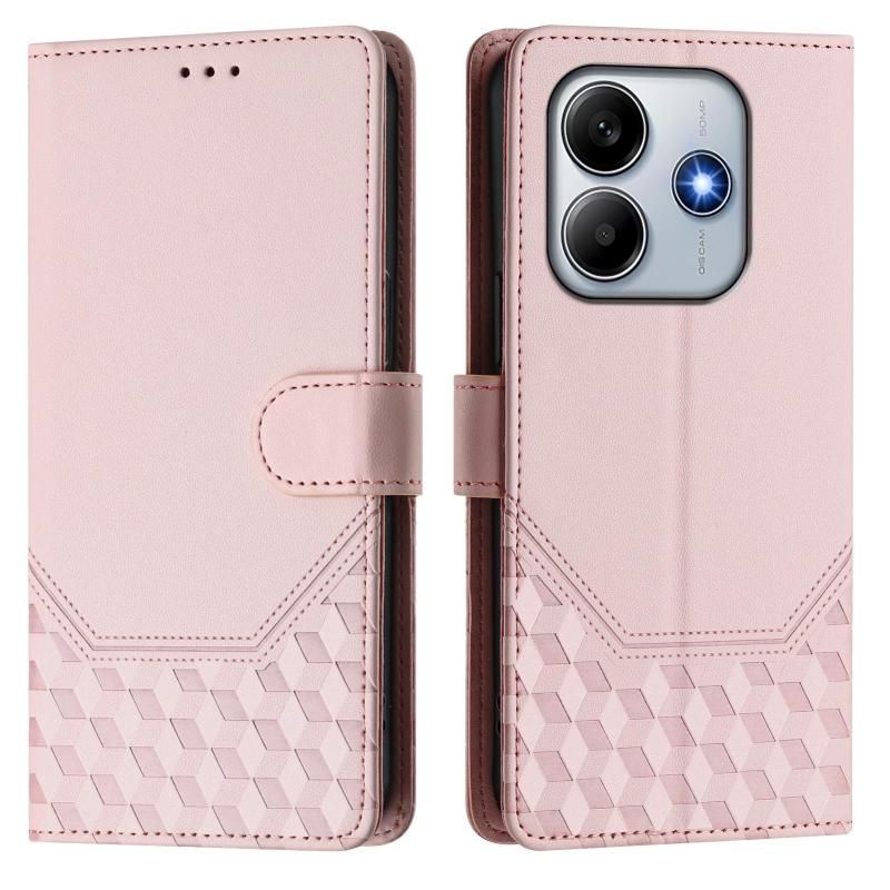 For Redmi Note 14 4G 163.25mm Honeycomb Embossing RFID Leather Phone Case(Pink)
