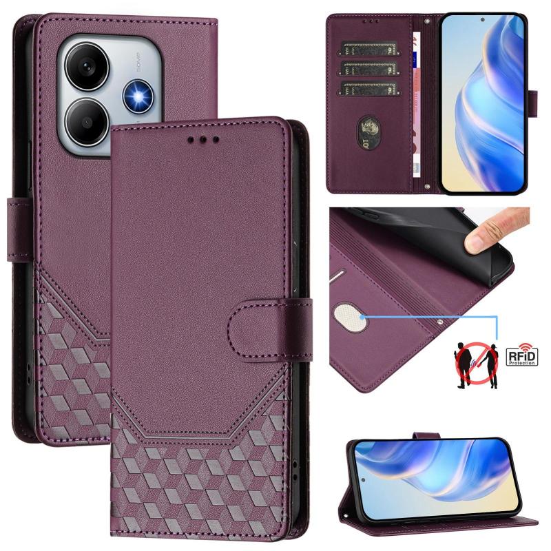 For Redmi Note 14 4G 163.25mm Honeycomb Embossing RFID Leather Phone Case(Violet)