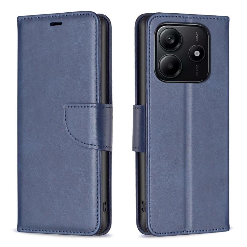 For Redmi Note 14 4G 163.25mm Lambskin Texture Pure Color Flip Leather Phone Case(Blue)