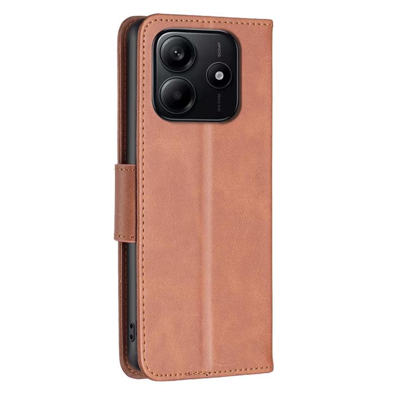 For Redmi Note 14 4G 163.25mm Lambskin Texture Pure Color Flip Leather Phone Case(Brown)