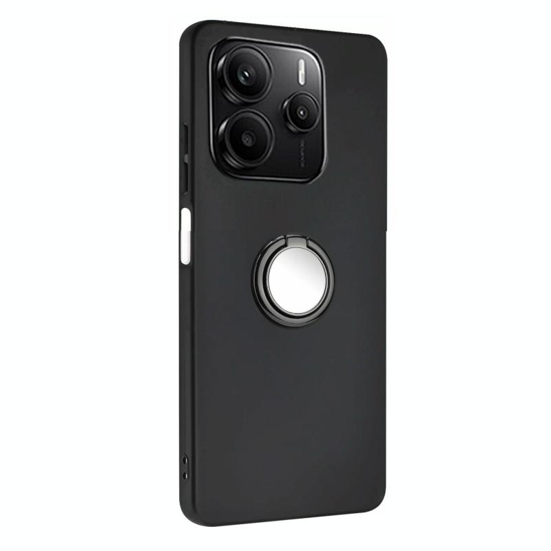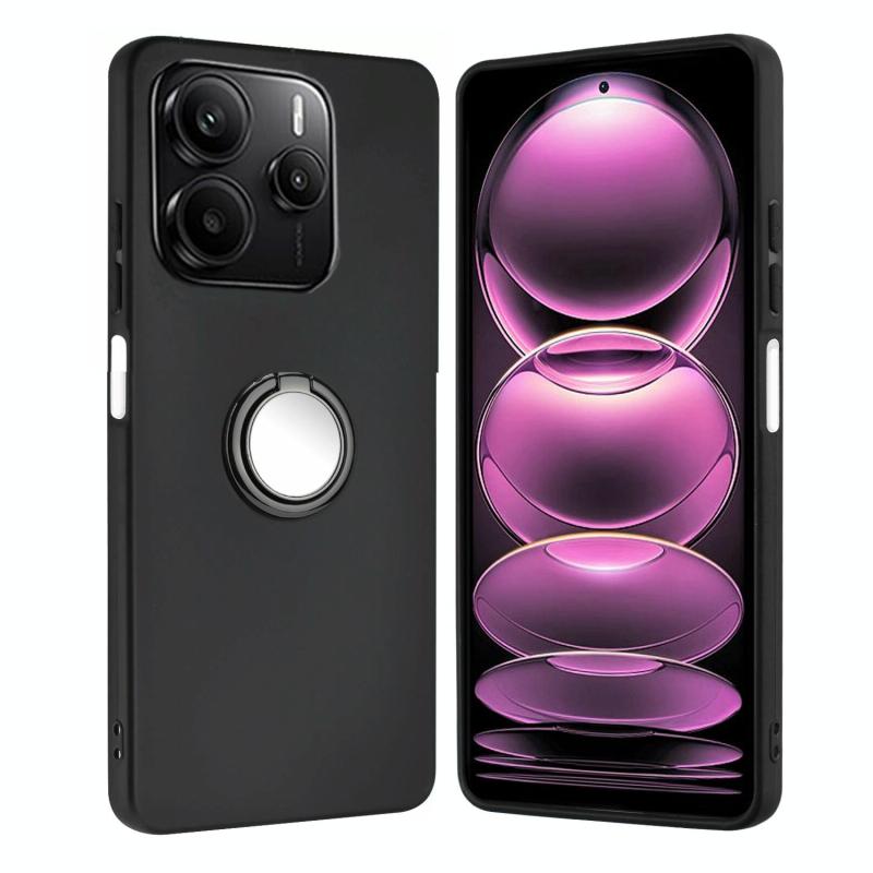 For Redmi Note 14 4G 163.25mm Matte Ring Holder TPU Phone Case(Black)