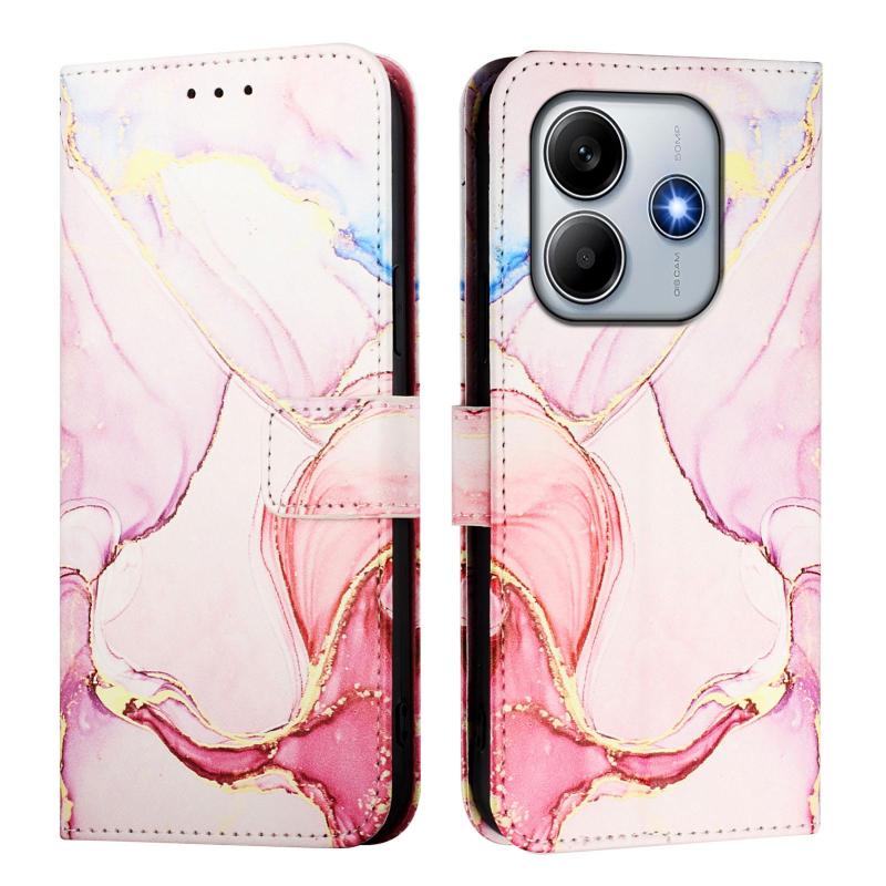 For Redmi Note 14 4G 163.25mm PT003 Marble Pattern Flip Leather Phone Case(Rose Gold)
