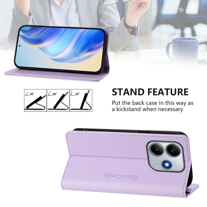 For Redmi Note 14 4G 163.25mm RC01 Dual-Folded Magnetic Suction RFID Leather Phone Case(Light Purple)