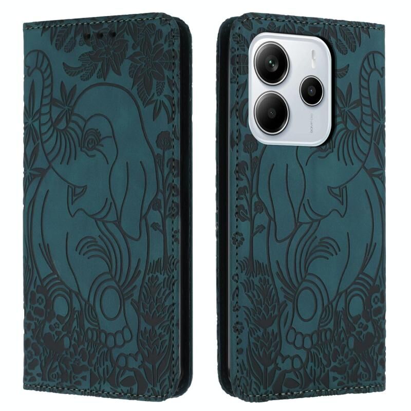 For Redmi Note 14 4G 163.25mm Retro Elephant Embossed Leather Phone Case(Green)