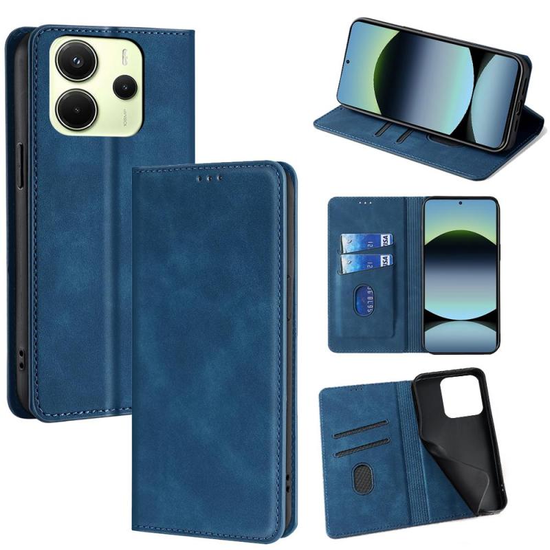 For Redmi Note 14 4G 163.25mm Skin Feel Magnetic Leather Phone Case(Blue)
