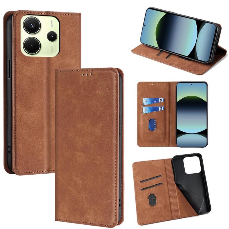 For Redmi Note 14 4G 163.25mm Skin Feel Magnetic Leather Phone Case(Light Brown)