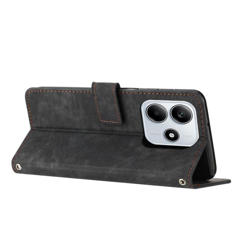 For Redmi Note 14 4G 163.25mm Skin Feel Stripe Pattern Leather Phone Case with Long Lanyard(Black)
