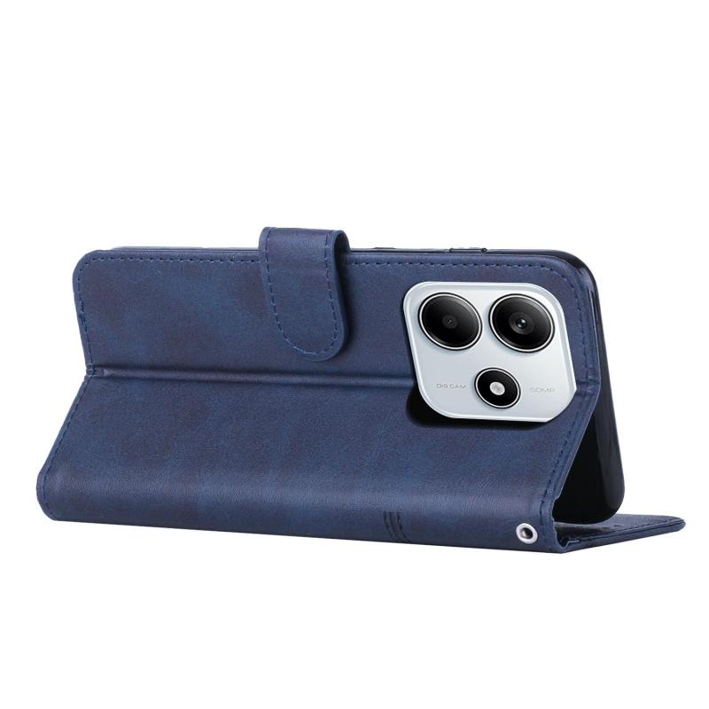 For Redmi Note 14 4G 163.25mm Stitching Calf Texture Buckle Leather Phone Case(Blue)