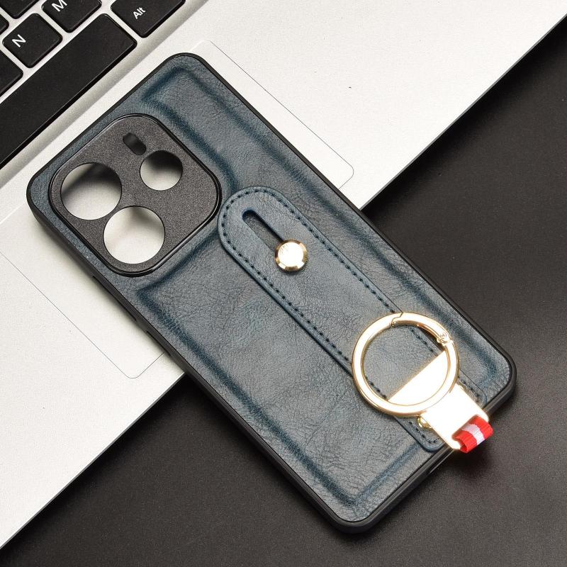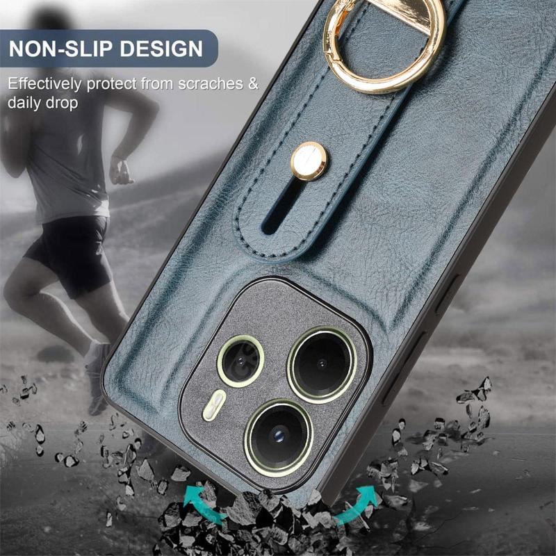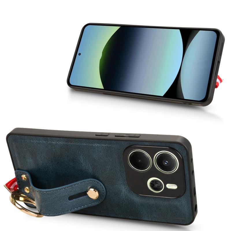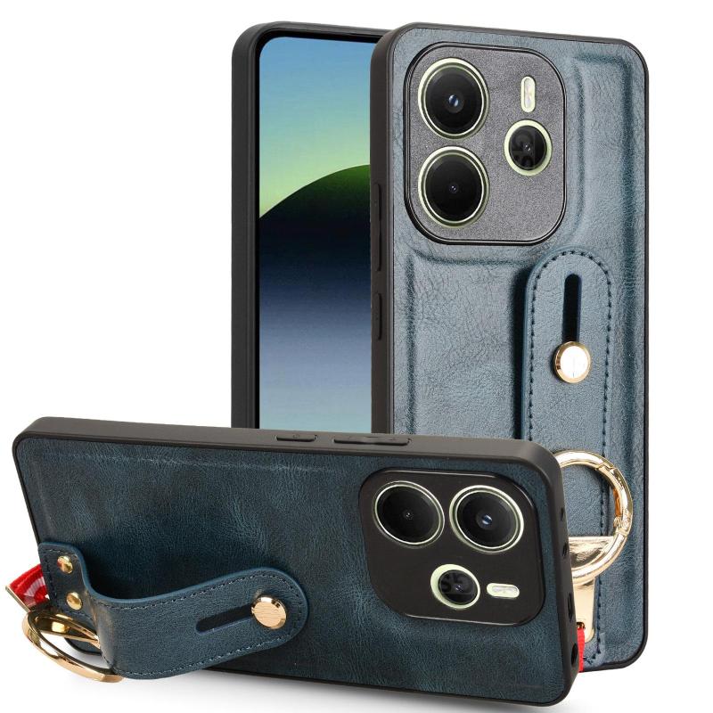 For Redmi Note 14 4G 163.25mm Wristband Leather Back Phone Case(Blue)