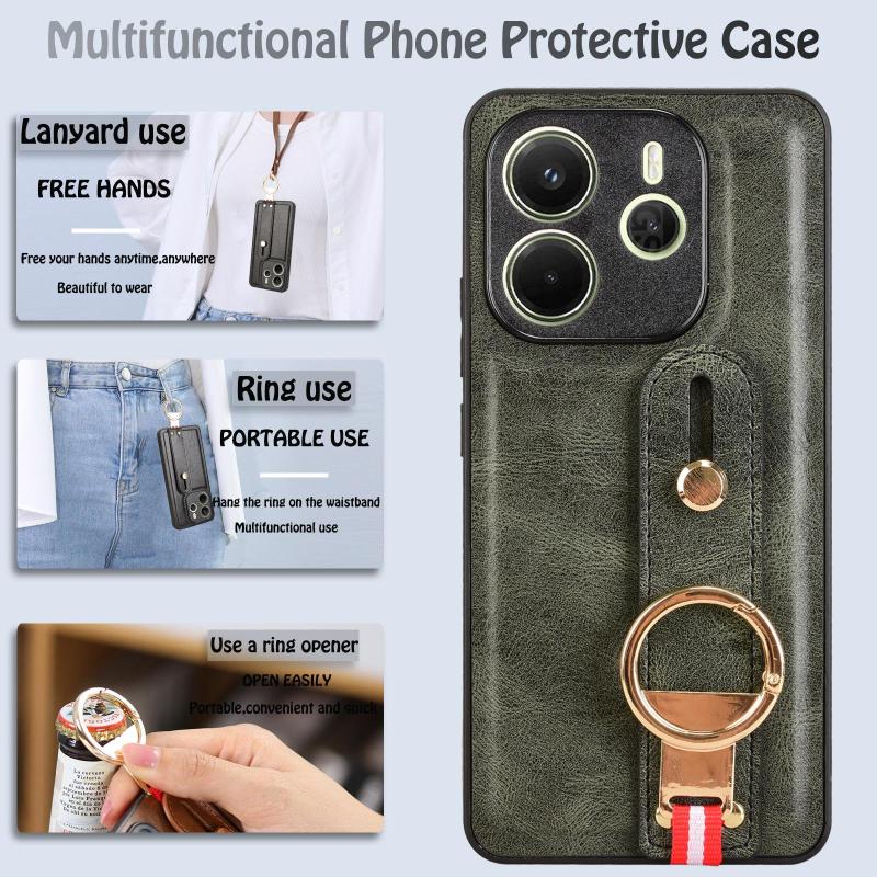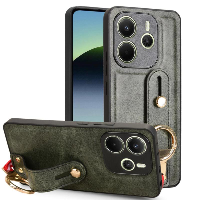 For Redmi Note 14 4G 163.25mm Wristband Leather Back Phone Case(Green)