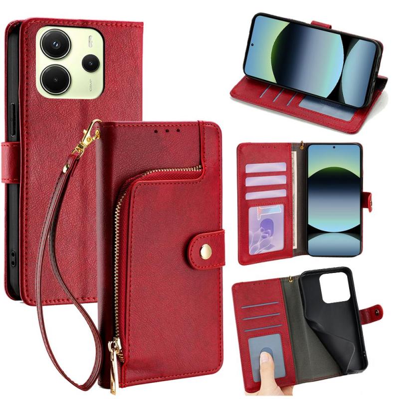 For Redmi Note 14 4G 163.25mm Zipper Bag Leather Phone Case(Red)