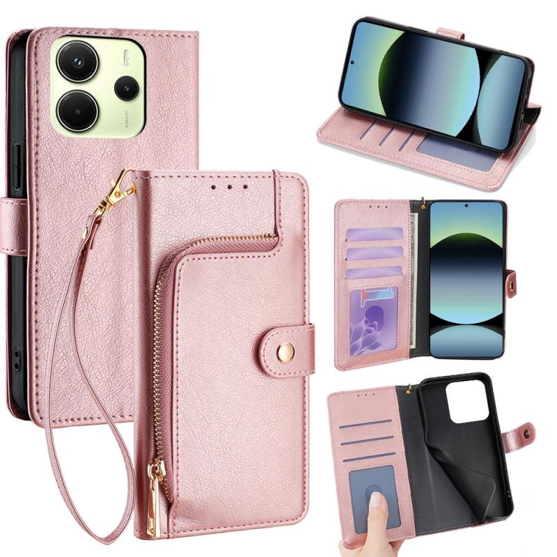 For Redmi Note 14 4G 163.25mm Zipper Bag Leather Phone Case(Rose Gold)