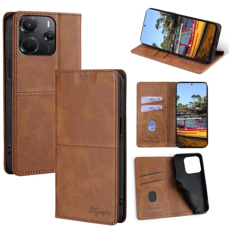 For Redmi Note 14 4G 164.84mm Cow Texture Magnetic Leather Phone Case(Light Brown)