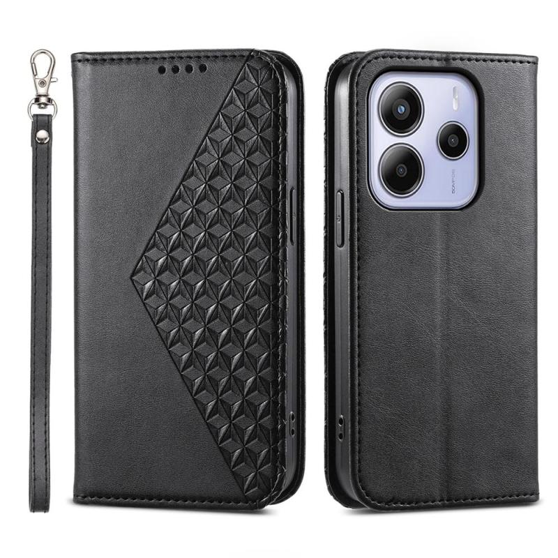 For Redmi Note 14 4G 164.84mm Cubic Grid Calf Texture Magnetic Leather Phone Case(Black)