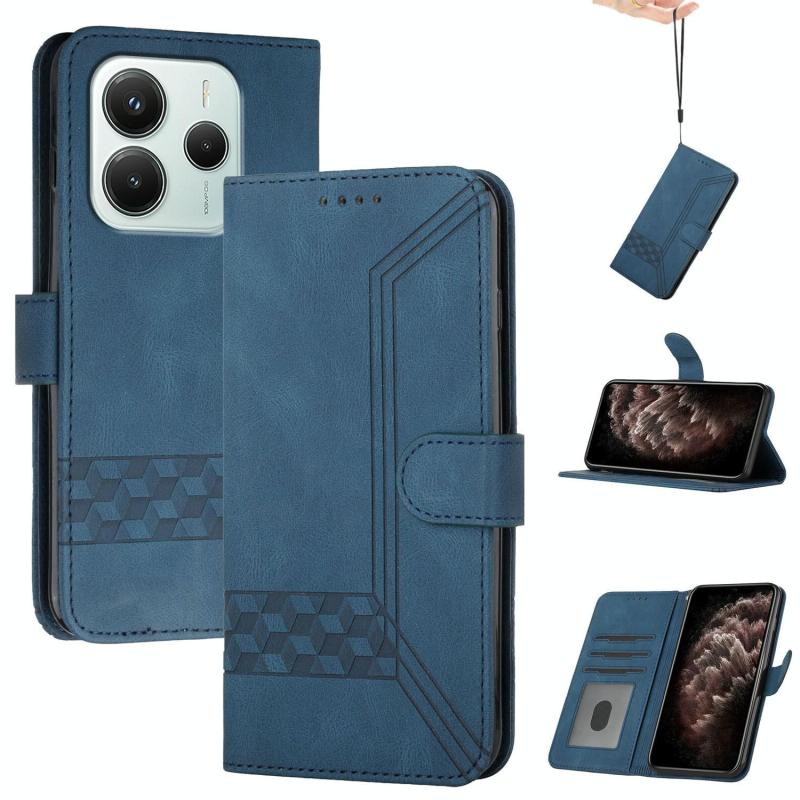 For Redmi Note 14 4G 164.84mm Cubic Skin Feel Flip Leather Phone Case(Blue)