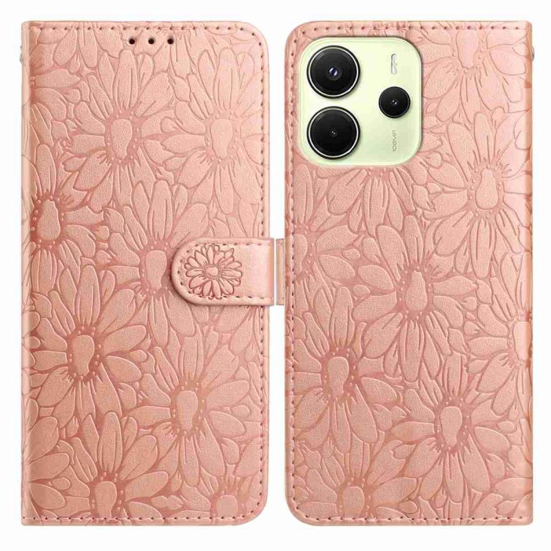 For Redmi Note 14 4G 164.84mm Daisy Embossed Leather Phone Case(Rose Gold)