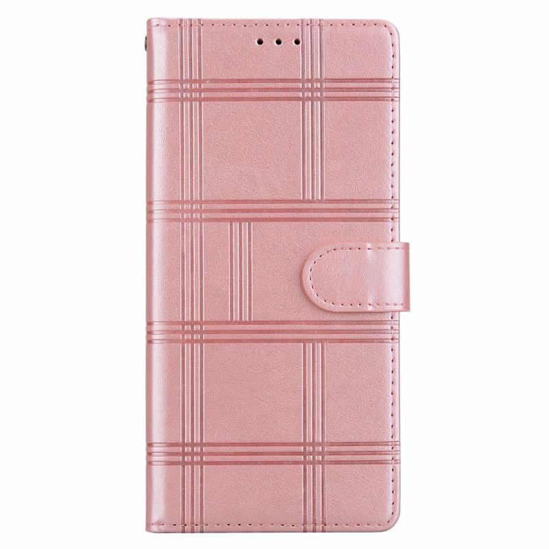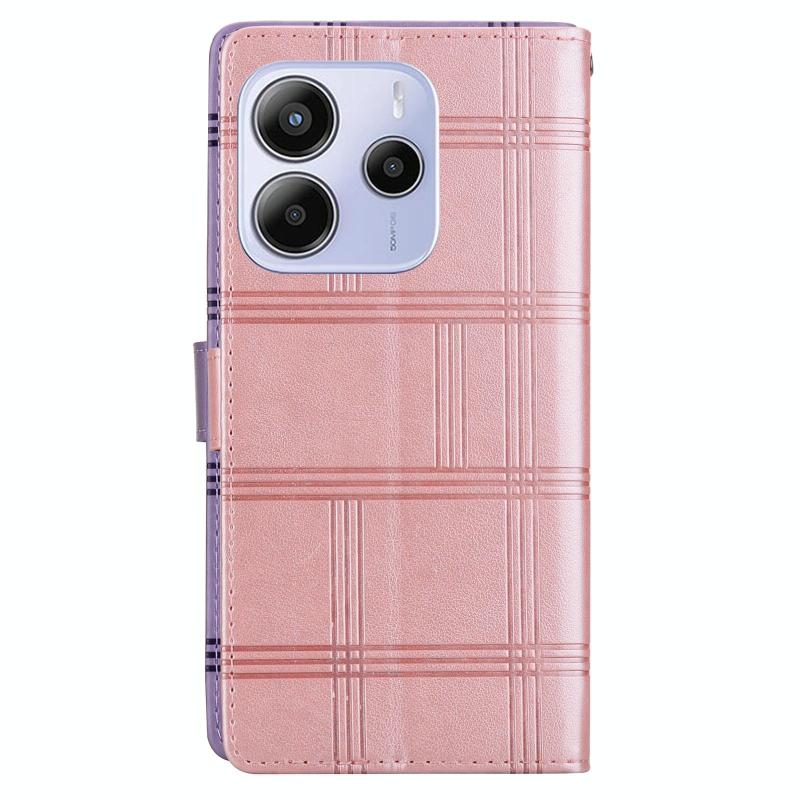 For Redmi Note 14 4G 164.84mm Embossed Checkered Leather Phone Case(Pink)