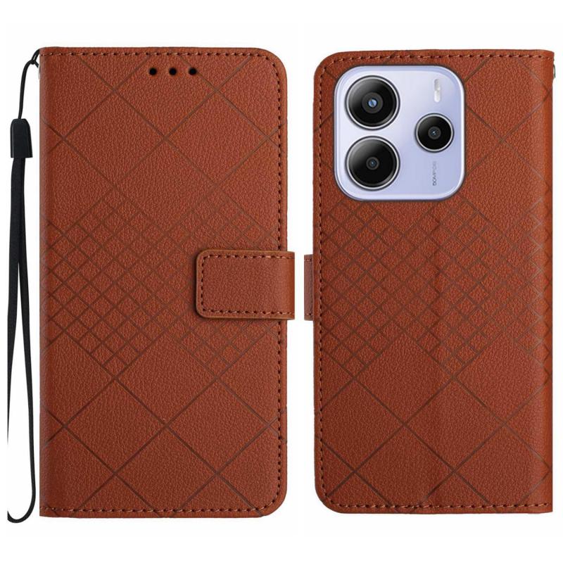 For Redmi Note 14 4G 164.84mm EU Version Rhombic Grid Texture Leather Phone Case(Brown)