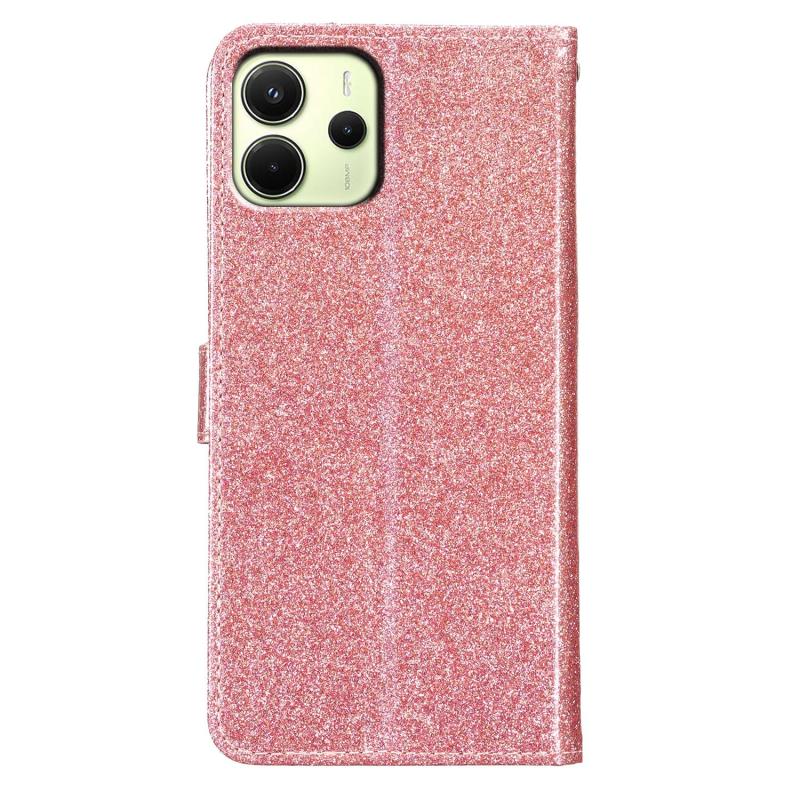 For Redmi Note 14 4G 164.84mm Glitter Powder Flip Leather Phone Case(Rose Gold)
