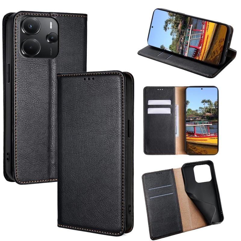 For Redmi Note 14 4G 164.84mm Gloss Oil Solid Color Magnetic Leather Phone Case(Black)