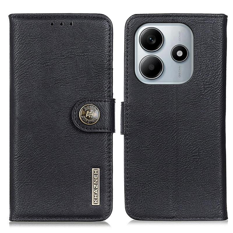For Redmi Note 14 4G 164.84mm KHAZNEH Cowhide Texture Horizontal Flip Leather Phone Case(Black)