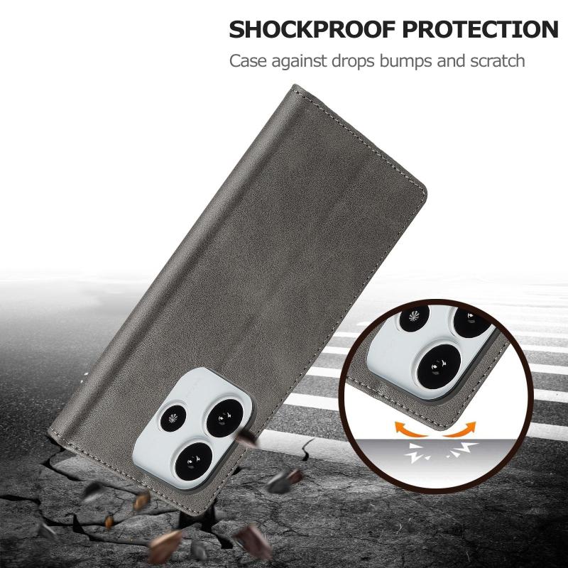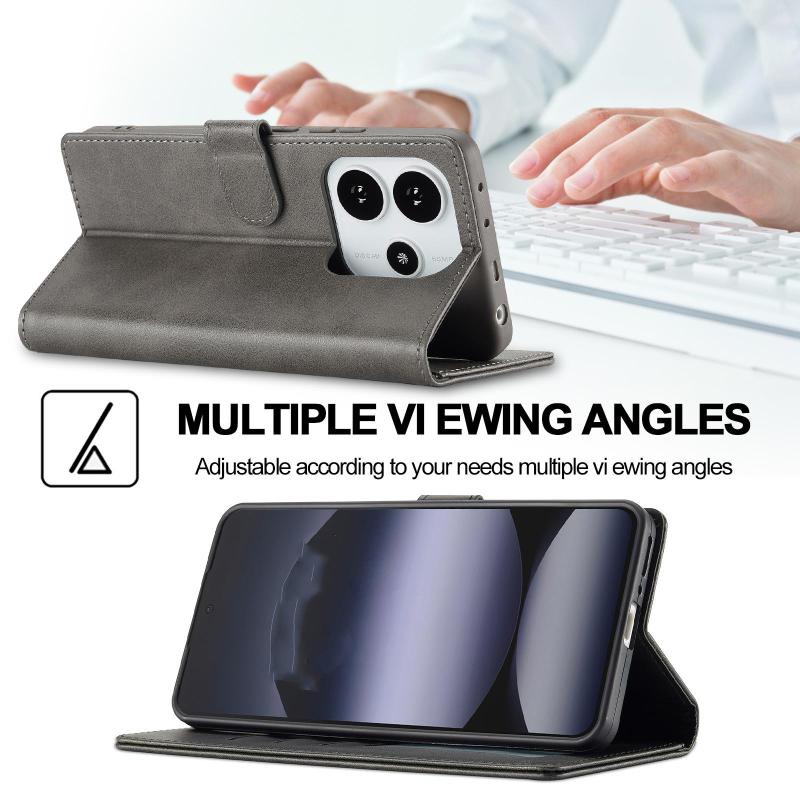 For Redmi Note 14 4G 164.84mm LC.IMEEKE Calf Texture Leather Phone Case(Grey) (LC.IMEEKE)