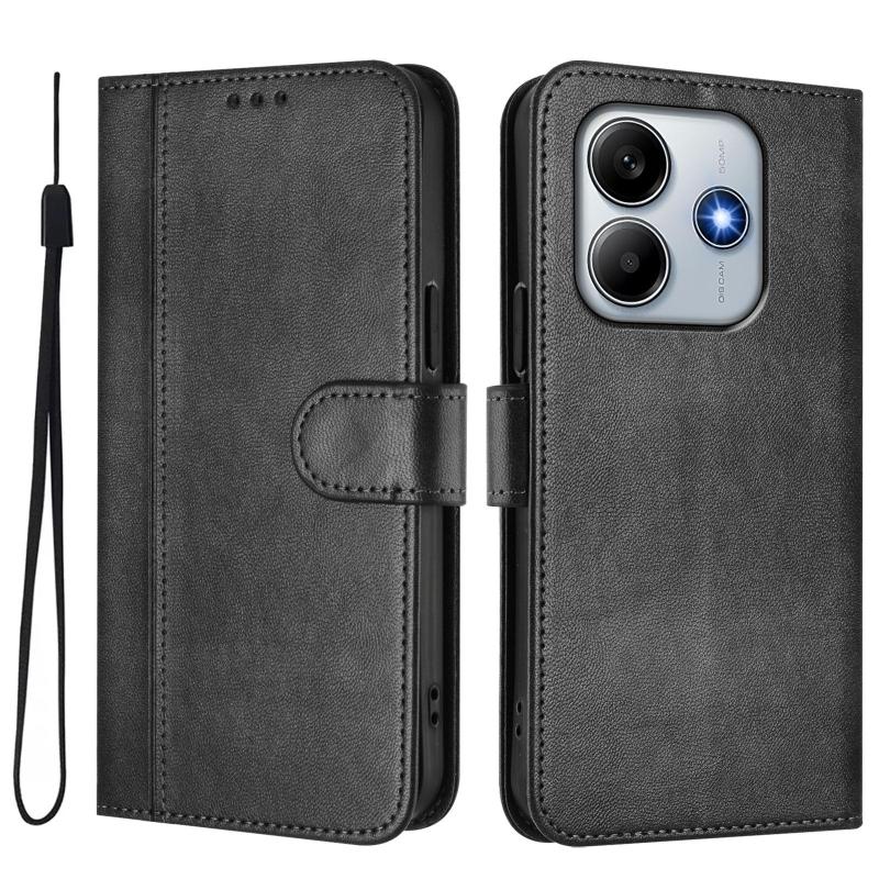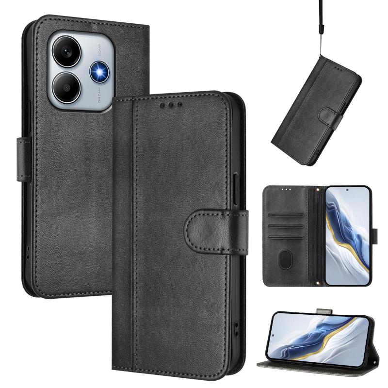 For Redmi Note 14 4G 164.84mm Line Splicing Buckle Retro Leather Phone Case(Black)