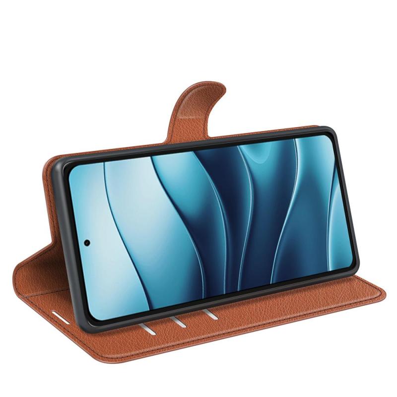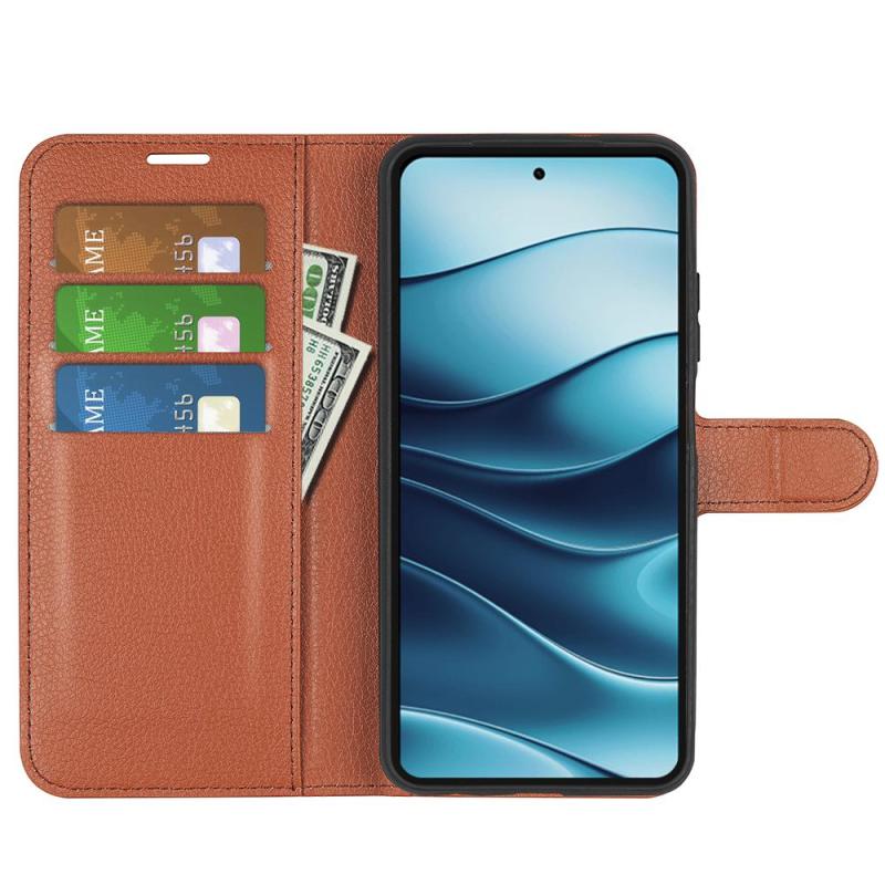 For Redmi Note 14 4G 164.84mm Litchi Texture Horizontal Flip Leather Phone Case with Holder(Brown)