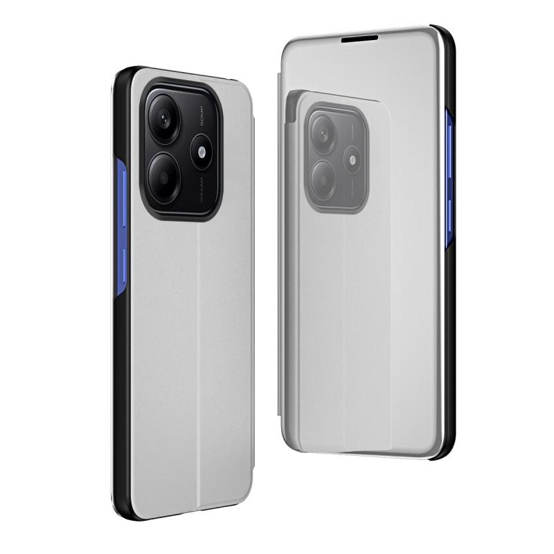 For Redmi Note 14 4G 164.84mm Plated Mirror Horizontal Flip Leather Phone Case with Holder(Silver)