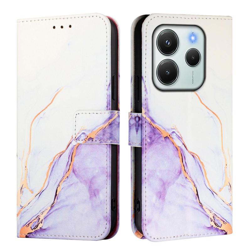 For Redmi Note 14 4G 164.84mm PT003 Marble Pattern Flip Leather Phone Case(White Purple)