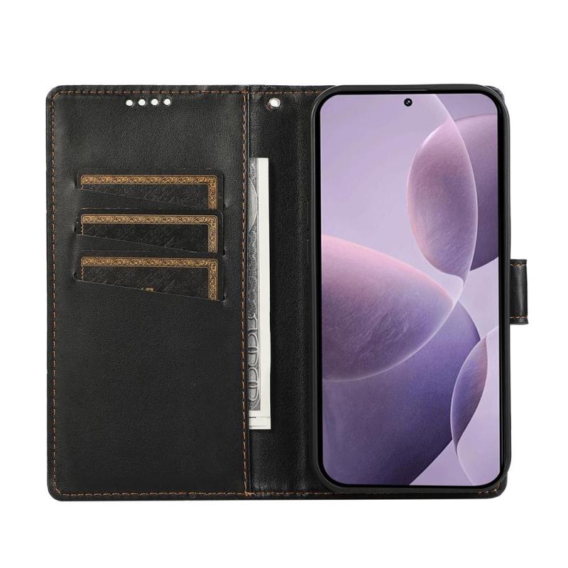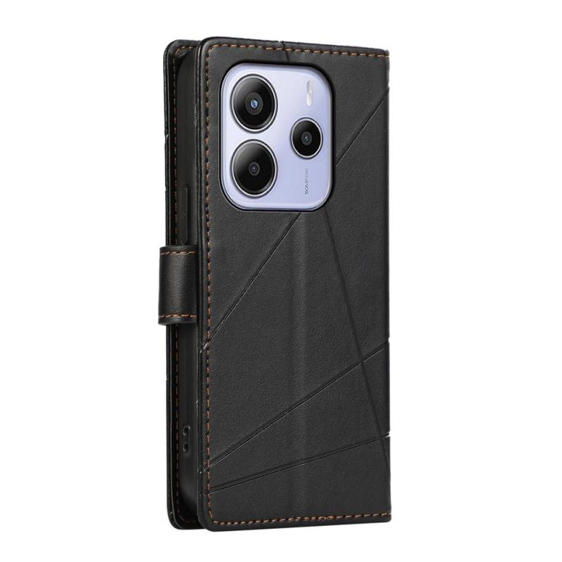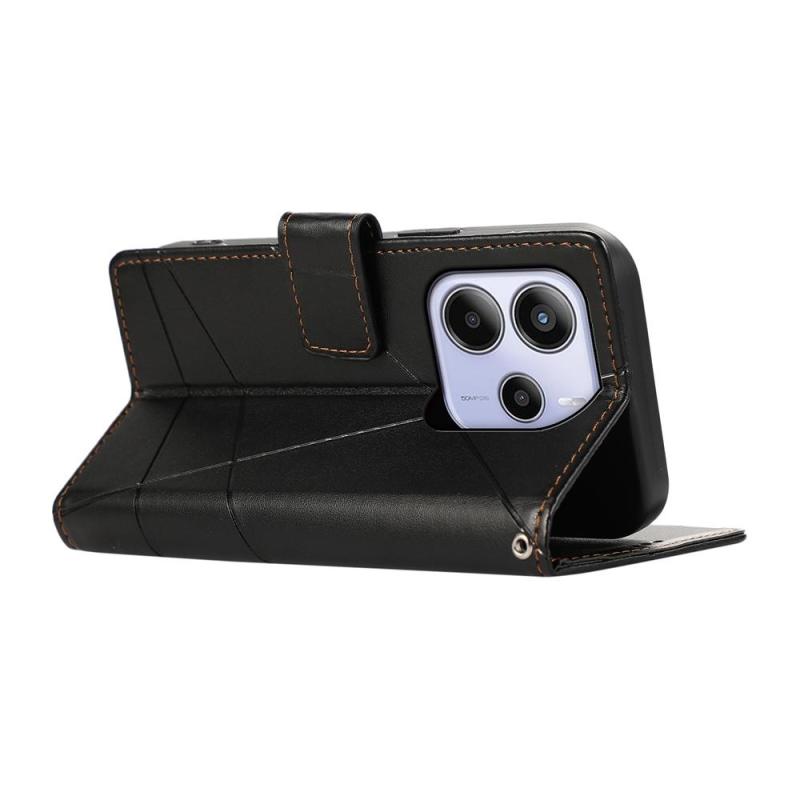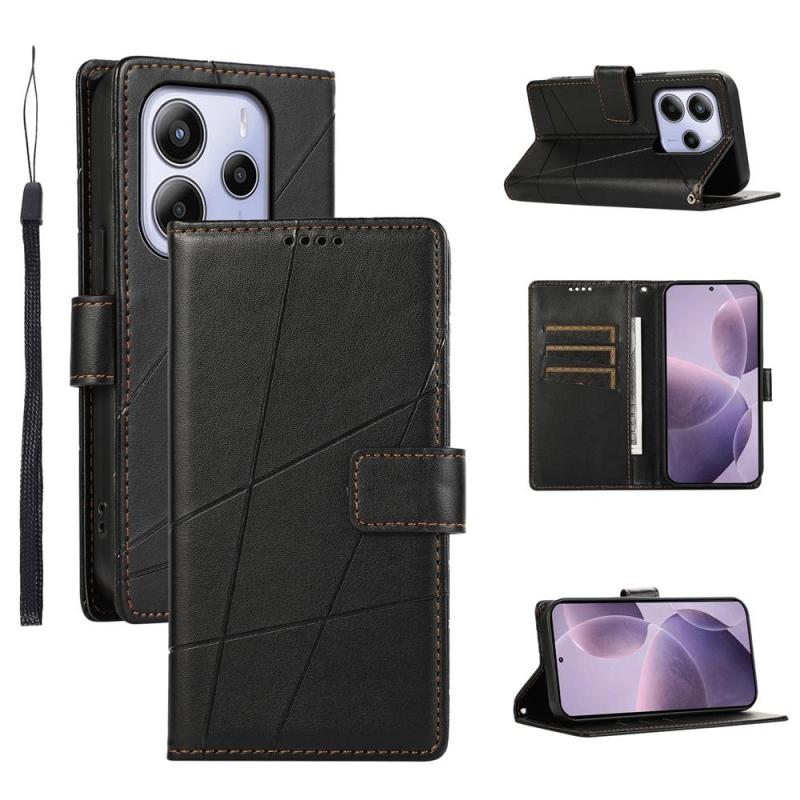 For Redmi Note 14 4G 164.84mm PU Genuine Leather Texture Embossed Line Phone Case(Black)