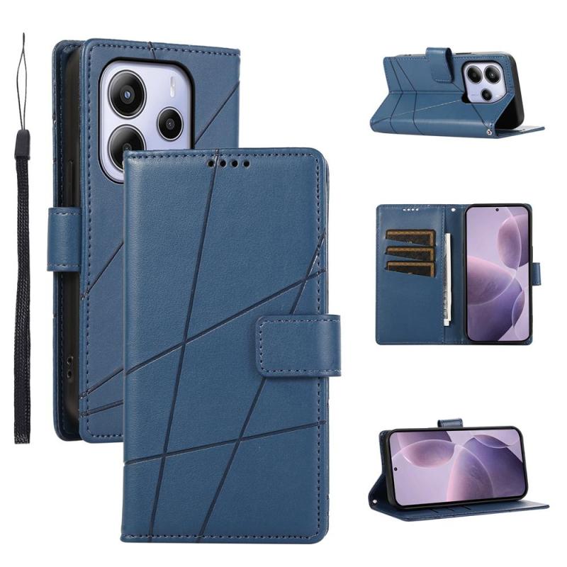 For Redmi Note 14 4G 164.84mm PU Genuine Leather Texture Embossed Line Phone Case(Blue)