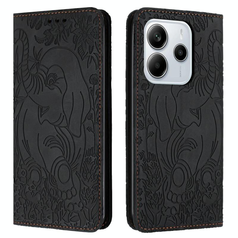 For Redmi Note 14 4G 164.84mm Retro Elephant Embossed Leather Phone Case(Black)