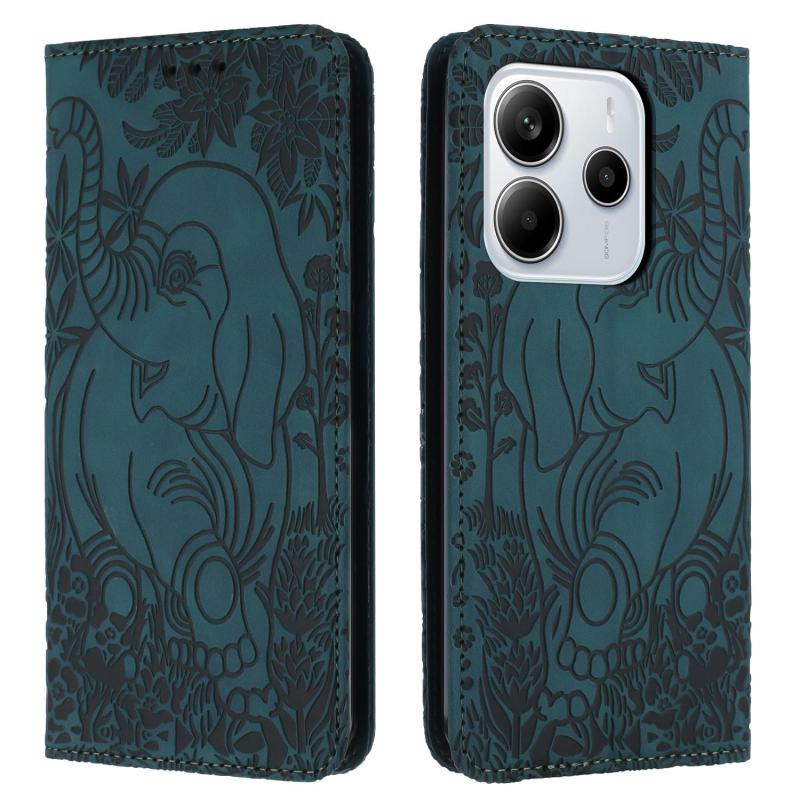For Redmi Note 14 4G 164.84mm Retro Elephant Embossed Leather Phone Case(Green)