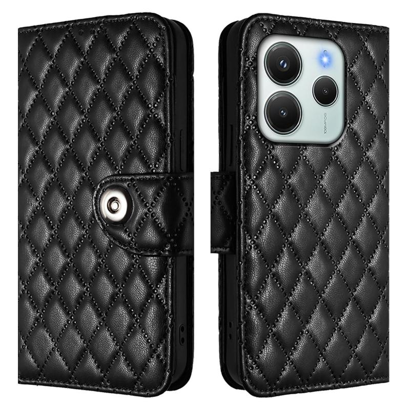 For Redmi Note 14 4G 164.84mm Rhombic Texture Flip Leather Phone Case with Lanyard(Black)