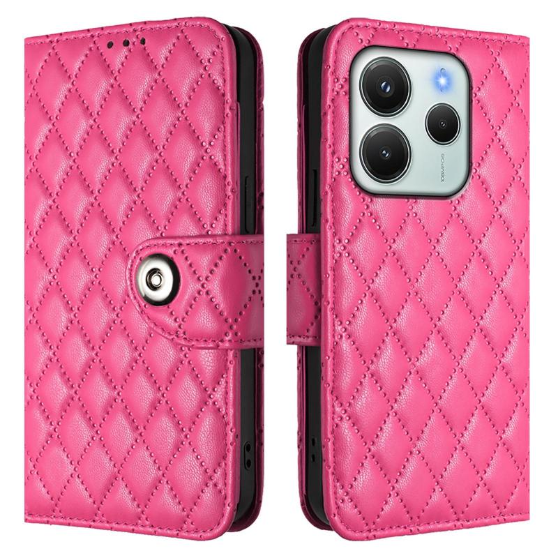 For Redmi Note 14 4G 164.84mm Rhombic Texture Flip Leather Phone Case with Lanyard(Rose Red)