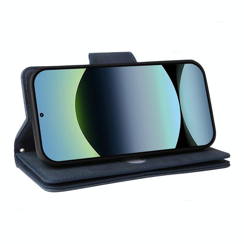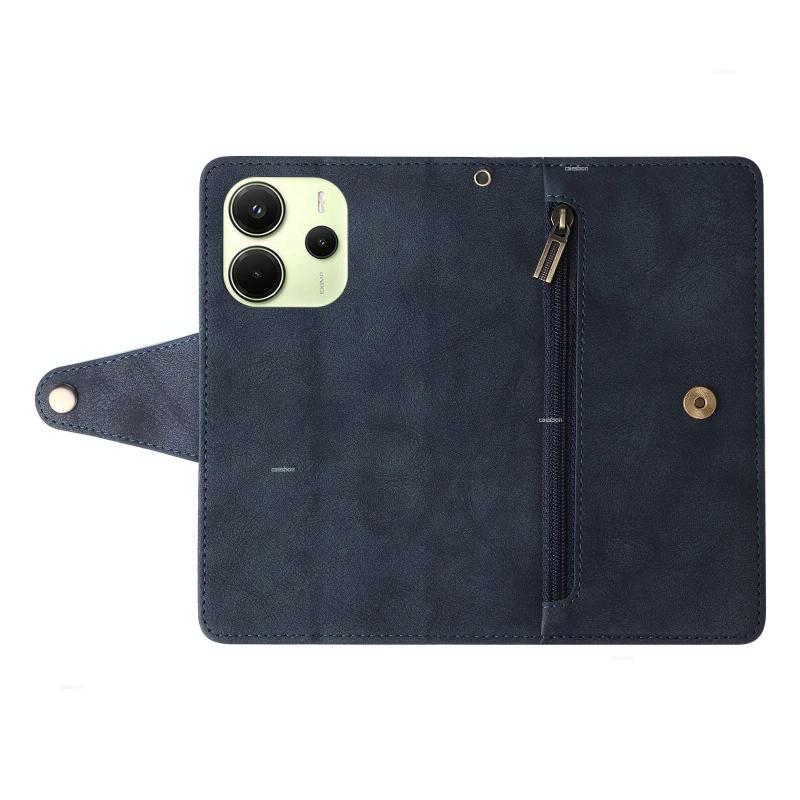 For Redmi Note 14 4G 164.84mm Rivet Buckle 9 Cards Three Fold Leather Phone Case(Blue)
