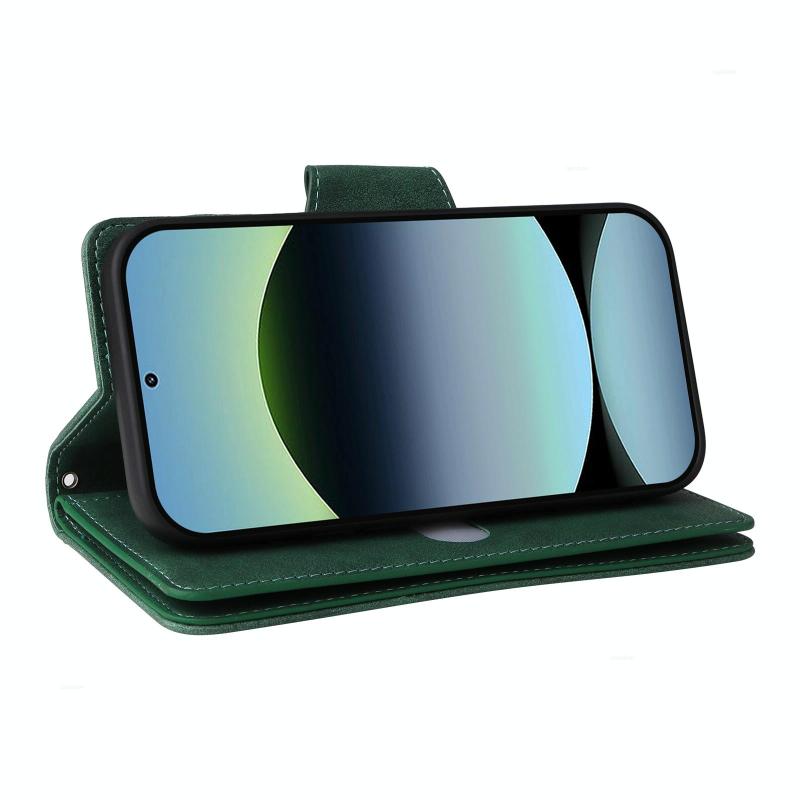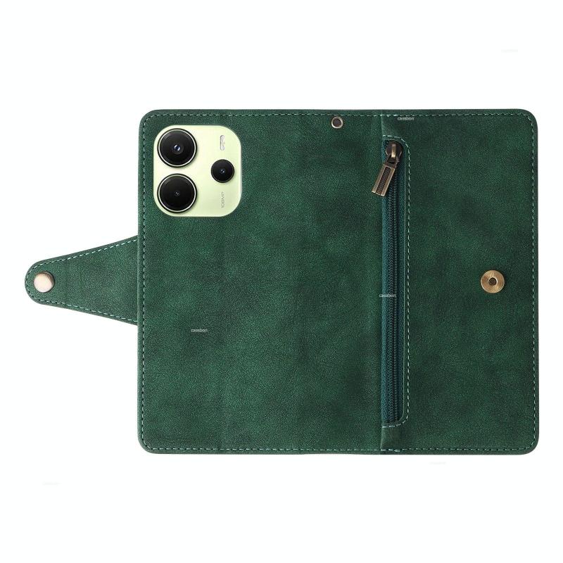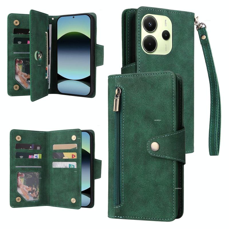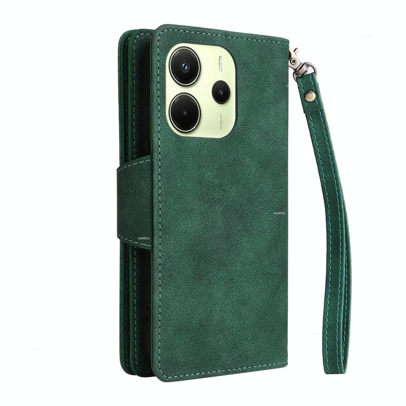 For Redmi Note 14 4G 164.84mm Rivet Buckle 9 Cards Three Fold Leather Phone Case(Green)
