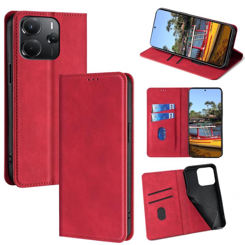 For Redmi Note 14 4G 164.84mm Skin Feel Magnetic Leather Phone Case(Red)