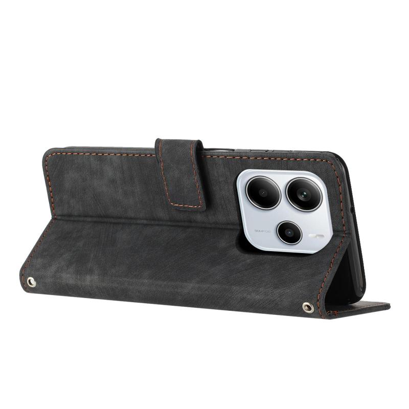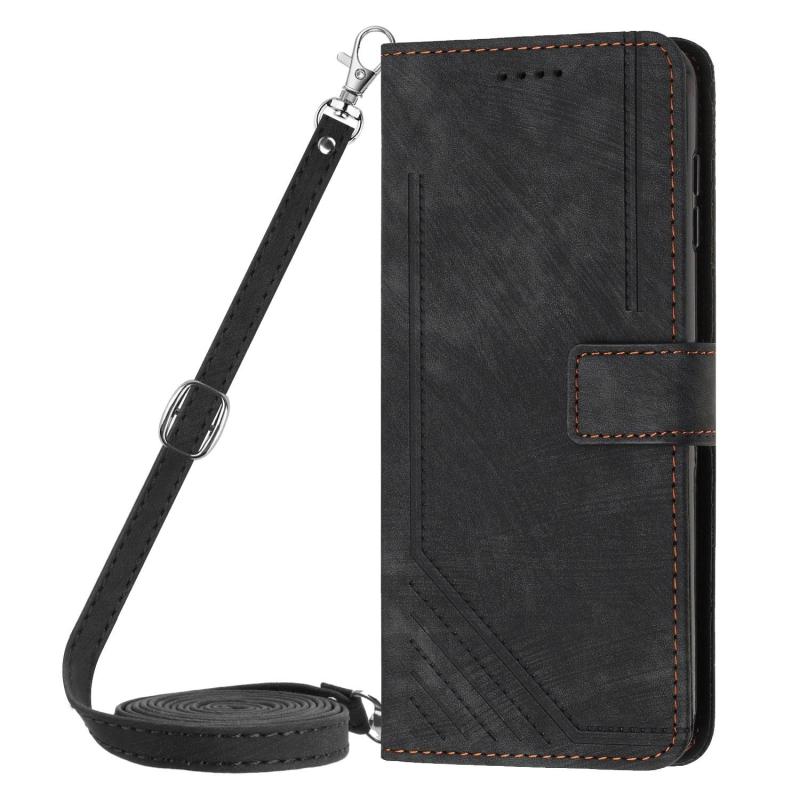 For Redmi Note 14 4G 164.84mm Skin Feel Stripe Pattern Leather Phone Case with Long Lanyard(Black)
