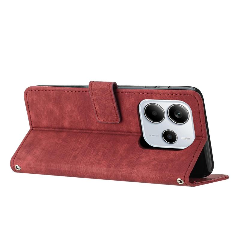 For Redmi Note 14 4G 164.84mm Skin Feel Stripe Pattern Leather Phone Case with Long Lanyard(Red)