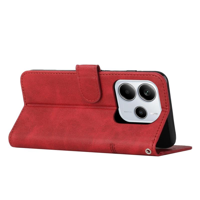 For Redmi Note 14 4G 164.84mm Stitching Calf Texture Buckle Leather Phone Case(Red)