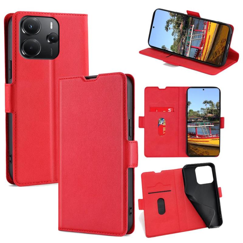 For Redmi Note 14 4G 164.84mm Ultra-thin Voltage Side Buckle Horizontal Flip Leather Phone Case(Red)