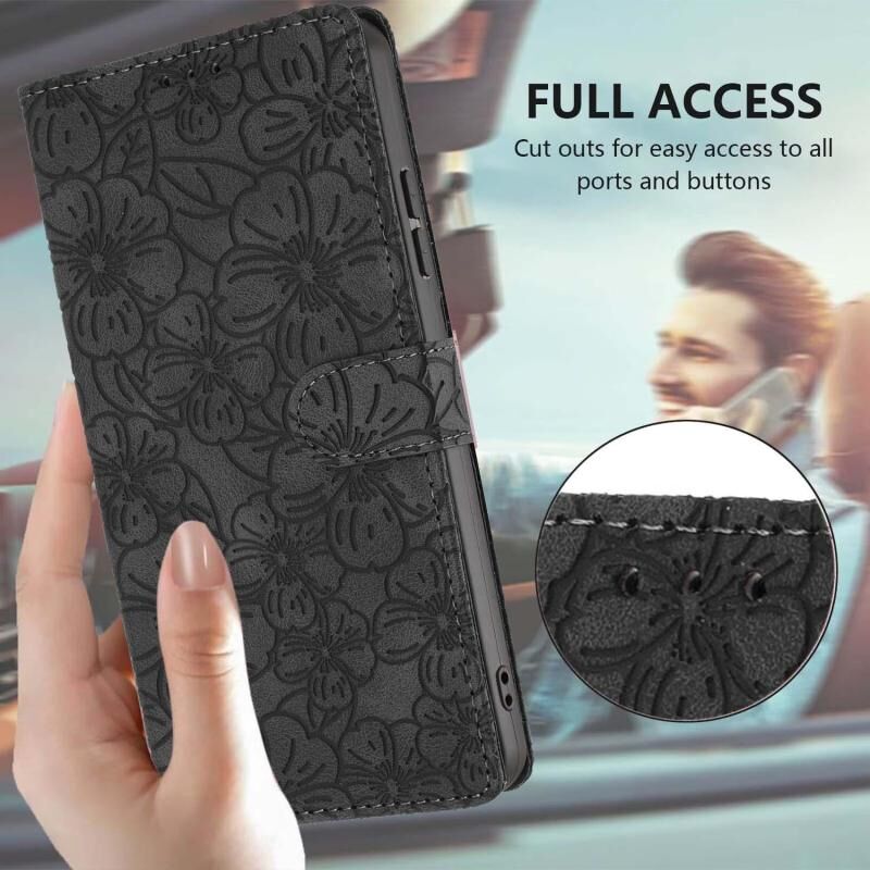 For Redmi Note 14 4G EU 164.84mm Cherry Blossoms Embossed Leather Phone Case(Black)