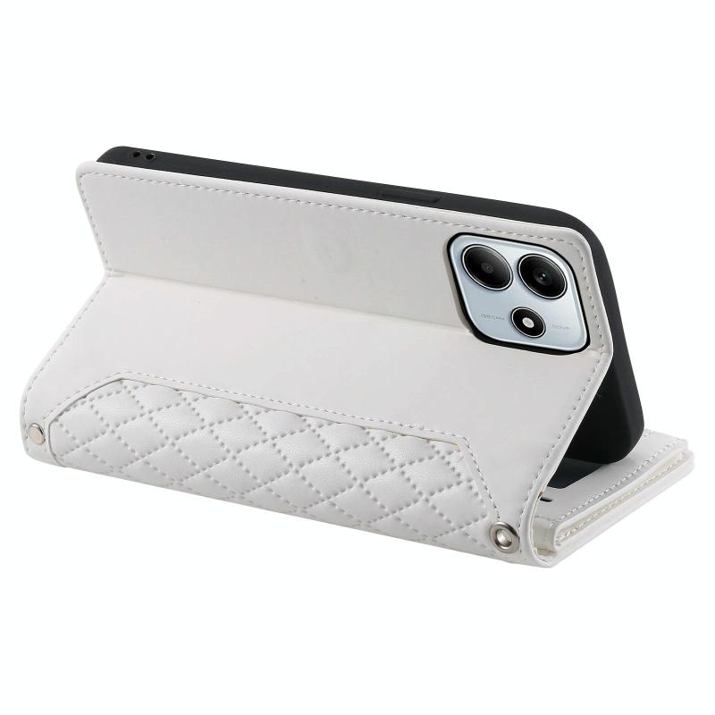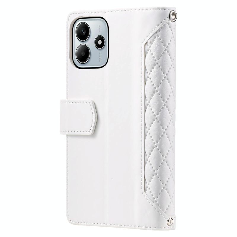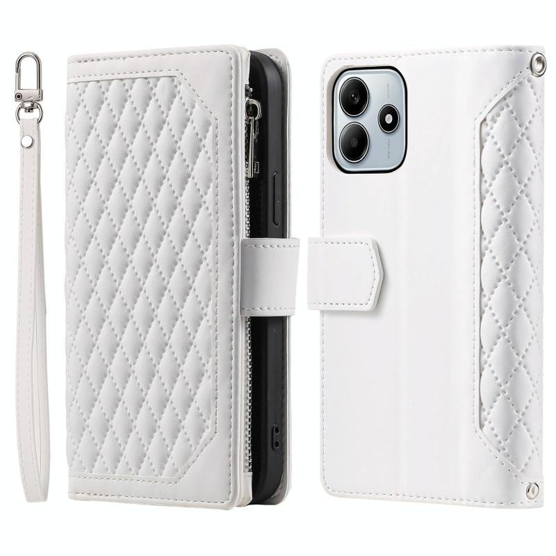 For Redmi Note 14 4G EU 164.84mm Grid Texture Zipper Leather Phone Case with Lanyard(White)