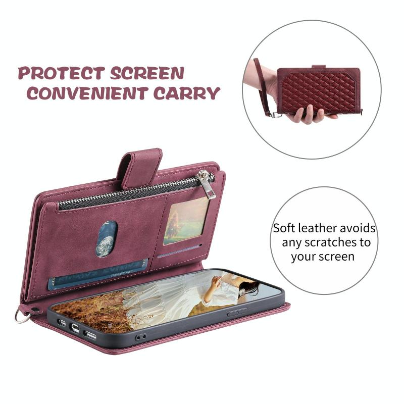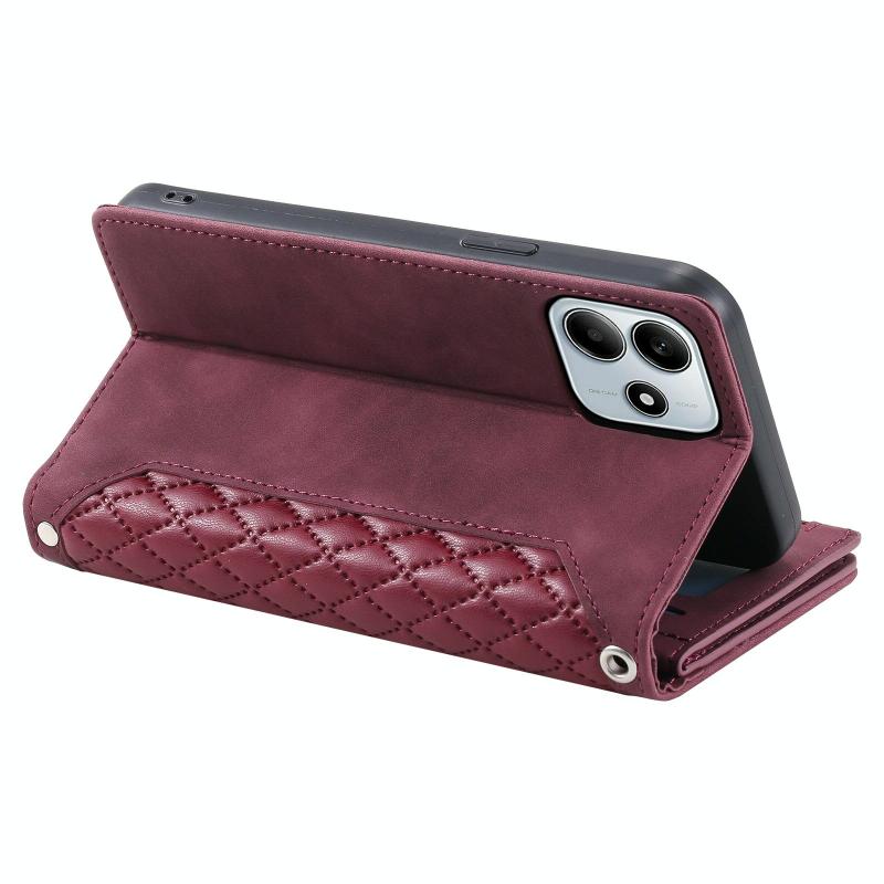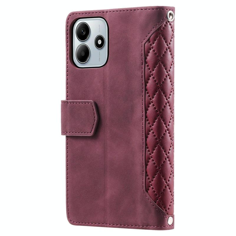 For Redmi Note 14 4G EU 164.84mm Grid Texture Zipper Leather Phone Case with Lanyard(Wine Red)