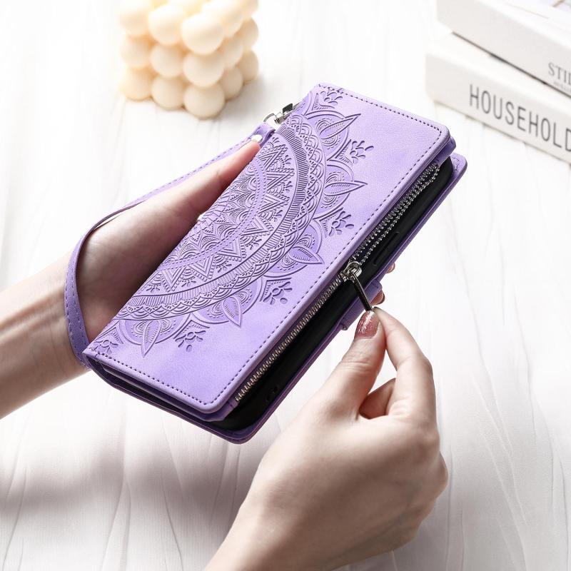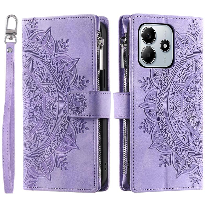 For Redmi Note 14 4G EU 164.84mm Multi-Card Totem Zipper Leather Phone Case(Purple)
