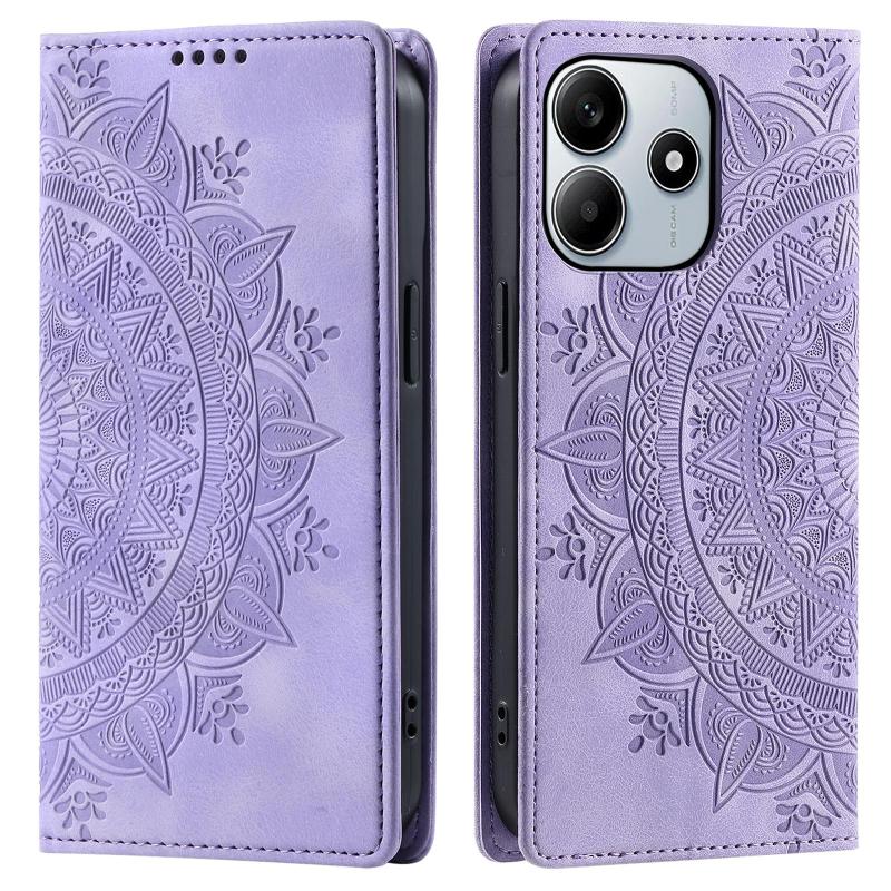 For Redmi Note 14 4G EU 164.84mm Totem Embossed Magnetic Leather Phone Case(Purple)