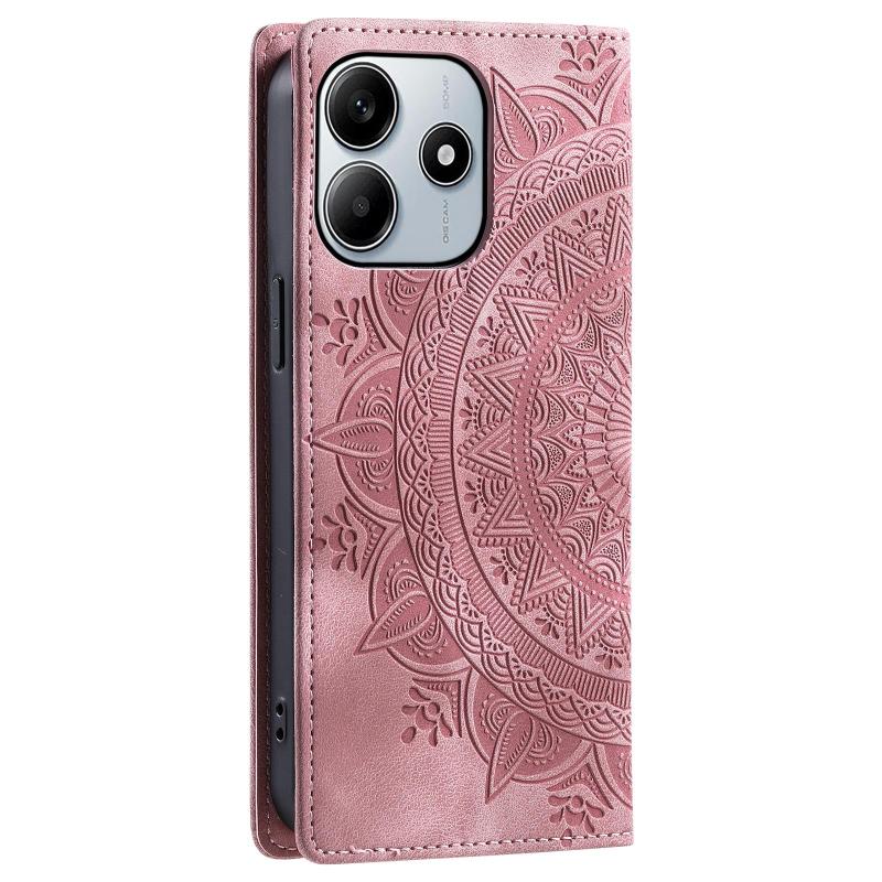 For Redmi Note 14 4G EU 164.84mm Totem Embossed Magnetic Leather Phone Case(Rose Gold)